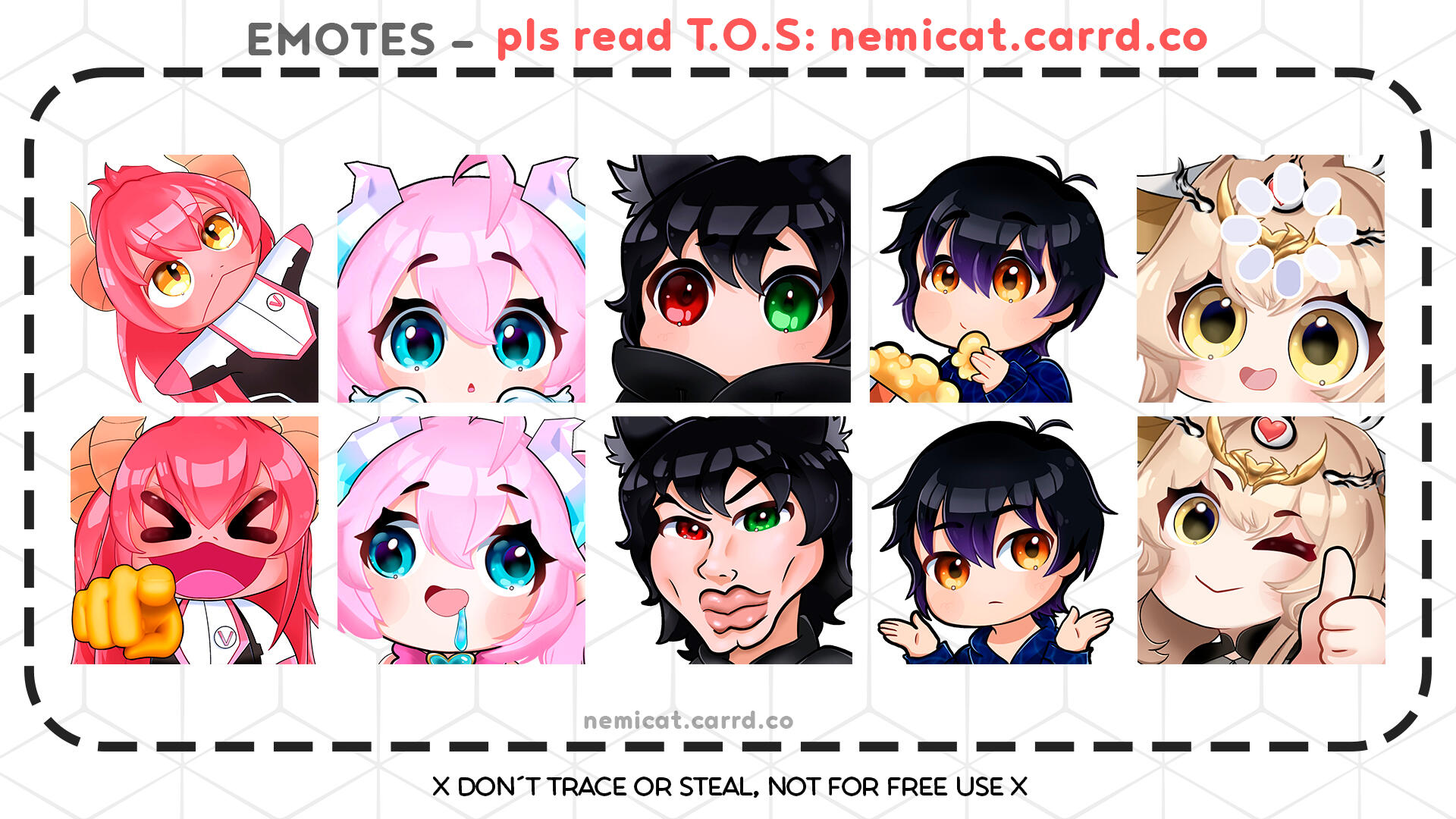 Includes 4 sizes (300px, 112px, 56px, 28px) per emote.